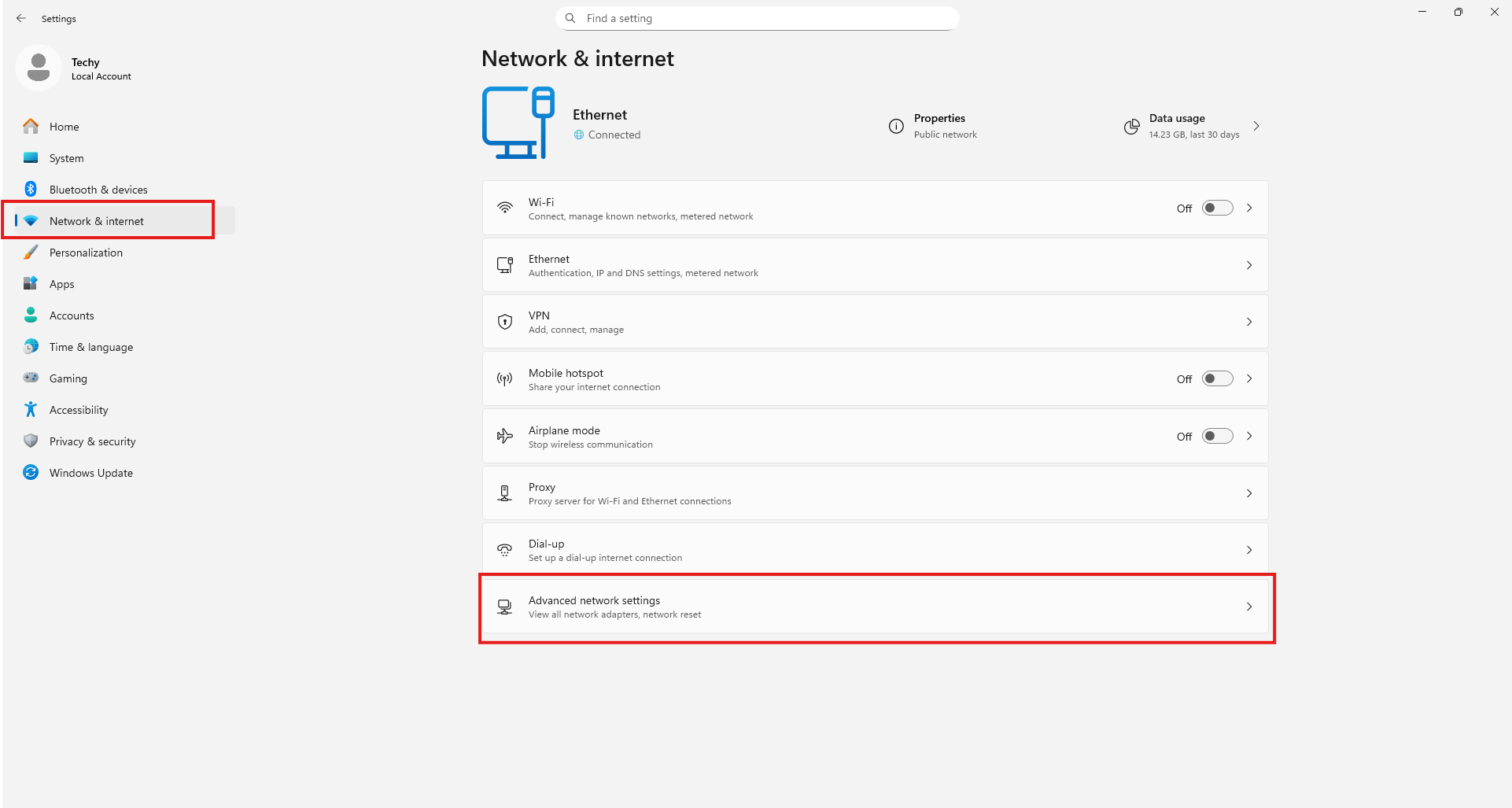 3. Scroll down → Advanced Network Settings